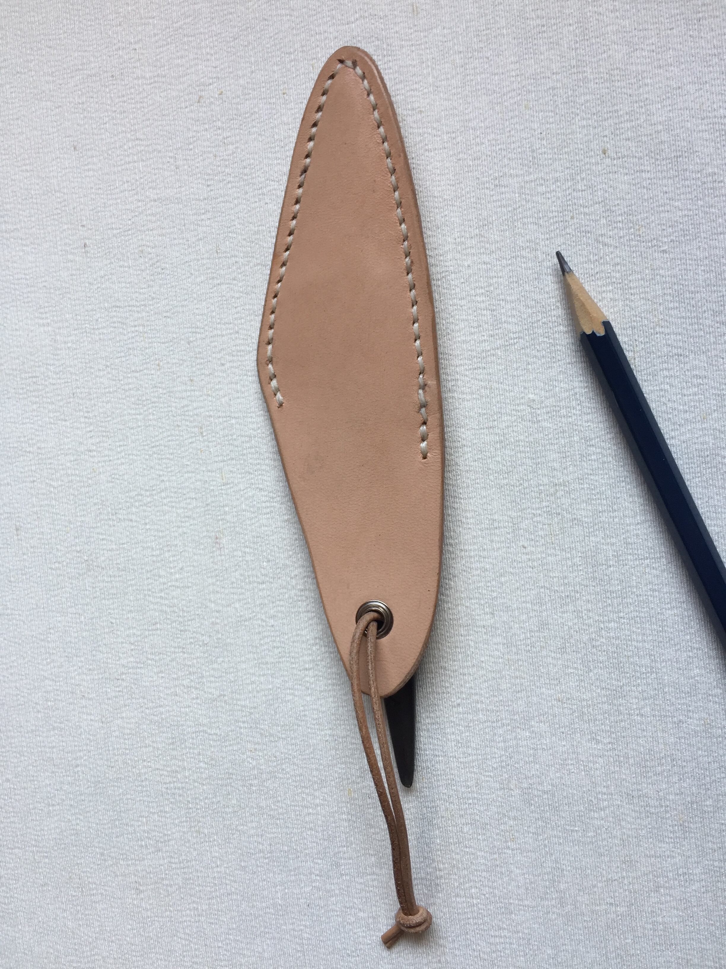 使うほどに味わいの生まれる革のケースは、それぞれ個性のある刀の姿にあわせ、日本刀の鞘のようにひとつひとつの小刀に丁寧にあつらえて制作していただいています。