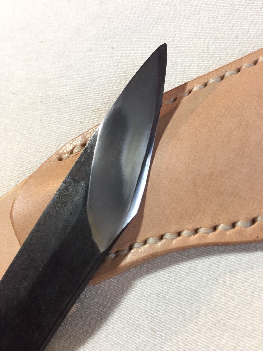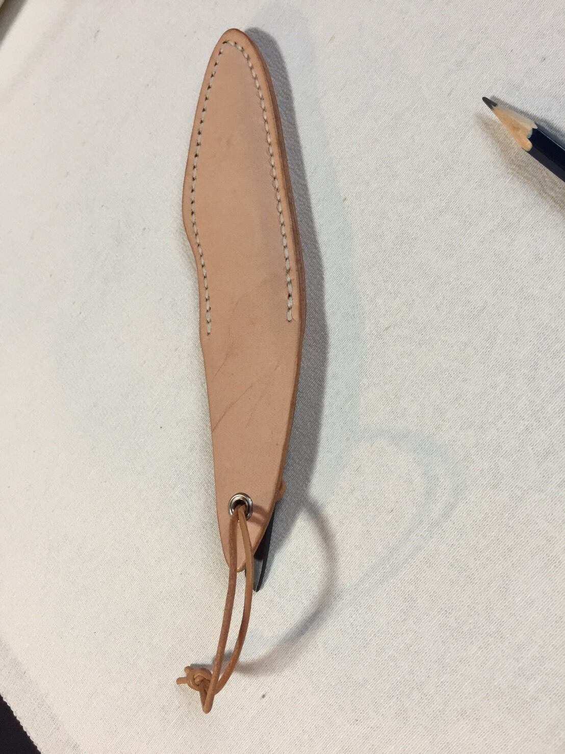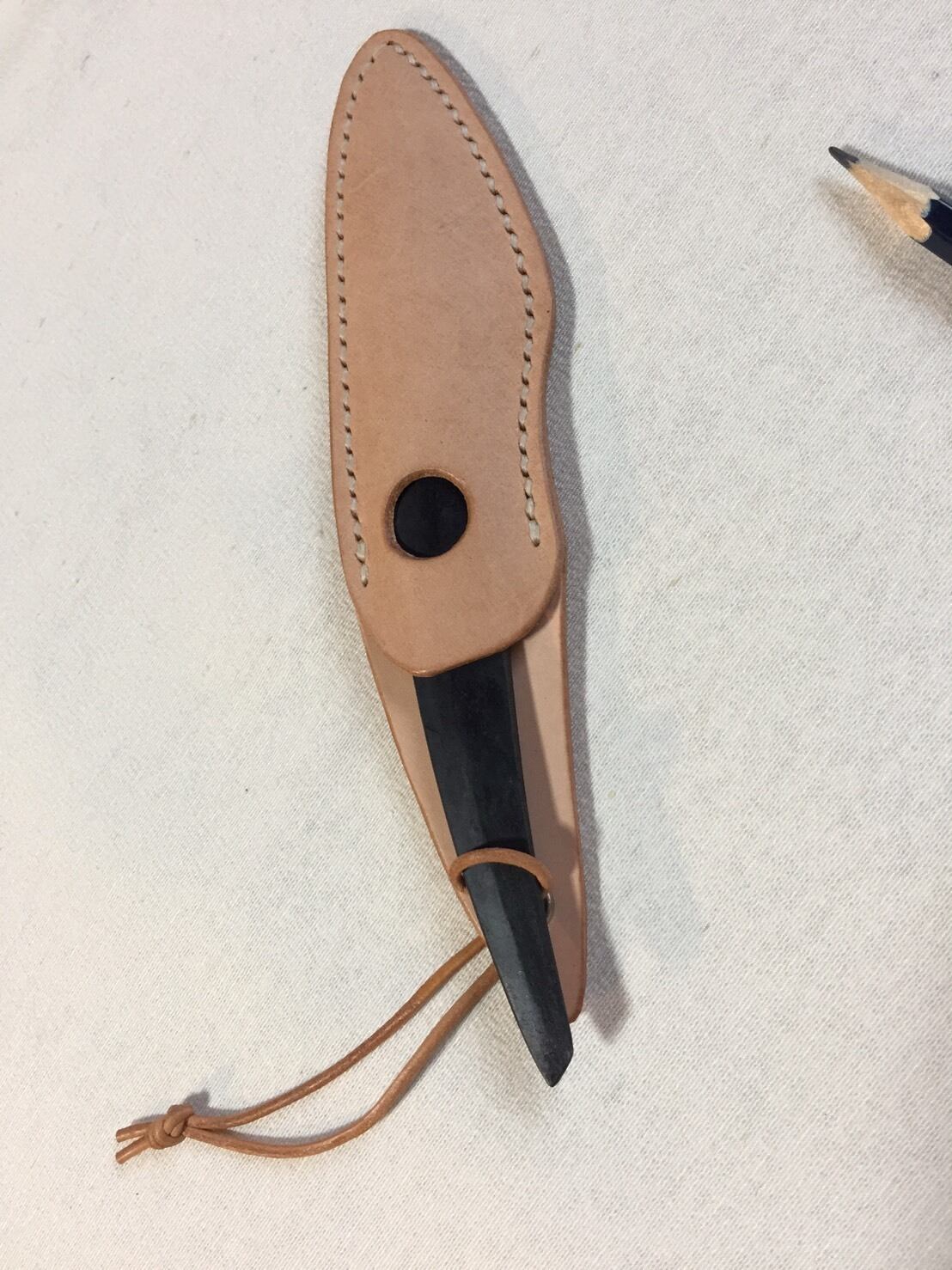 使うほどに味わいの生まれる革のケースは、それぞれ個性のある刀の姿にあわせ、日本刀の鞘のようにひとつひとつの小刀に丁寧にあつらえて制作していただいています。