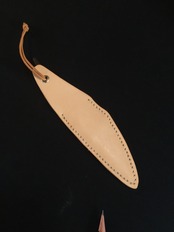 使うほどに味わいの生まれる革のケースは、それぞれ個性のある刀の姿にあわせ、日本刀の鞘のようにひとつひとつの小刀に丁寧にあつらえて制作していただいています。