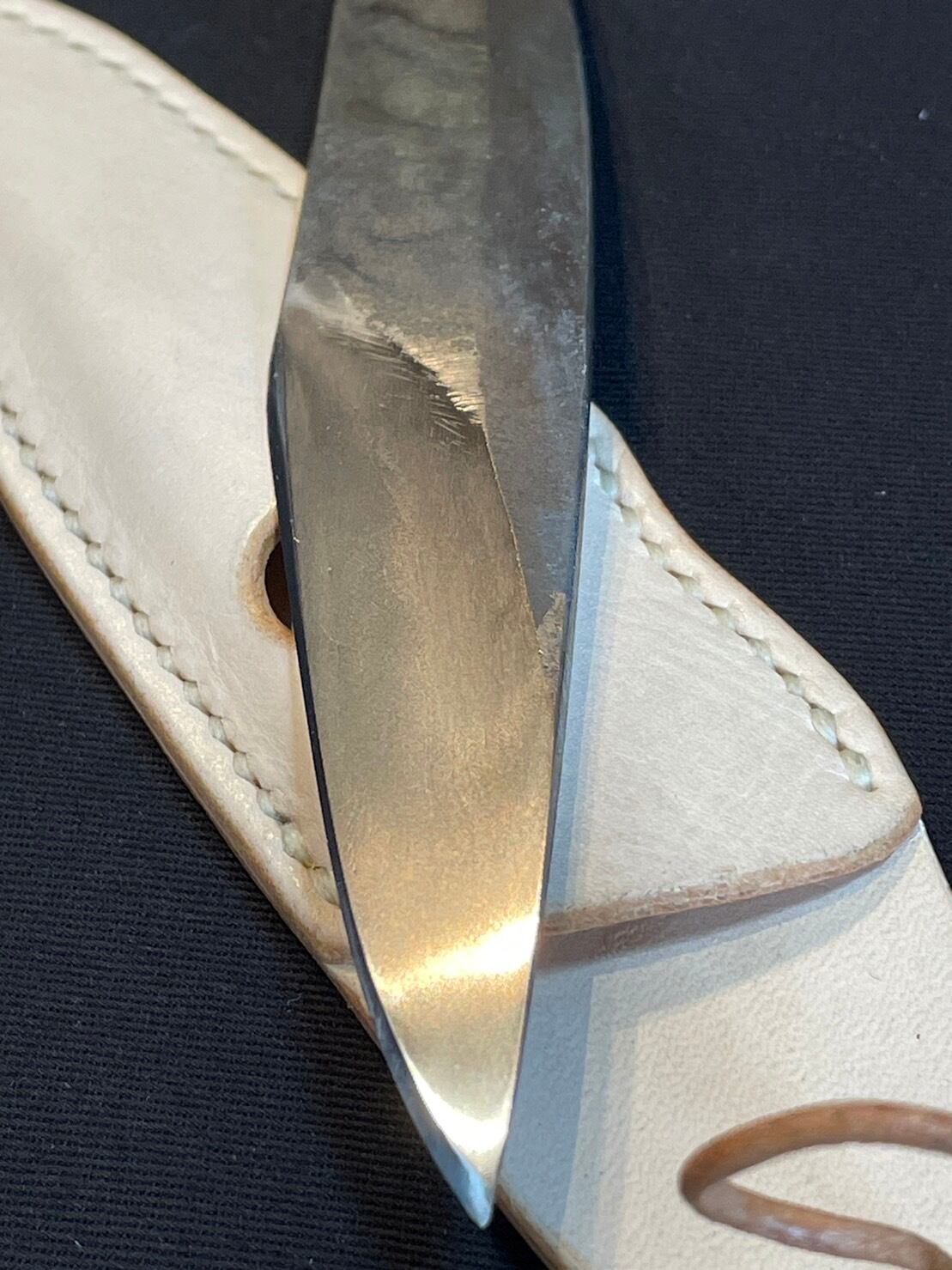 使うほどに味わいの生まれる革のケースは、それぞれ個性のある刀の姿にあわせ、日本刀の鞘のようにひとつひとつの小刀に丁寧にあつらえて制作していただいています。